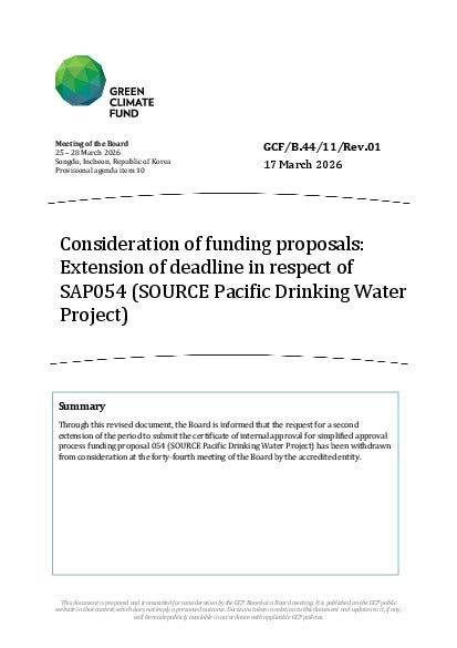 GCF/B.44/11/Rev.01 : Consideration of funding proposals: Extension of deadline in respect of SAP054 (SOURCE Pacific Drinking Water Project)