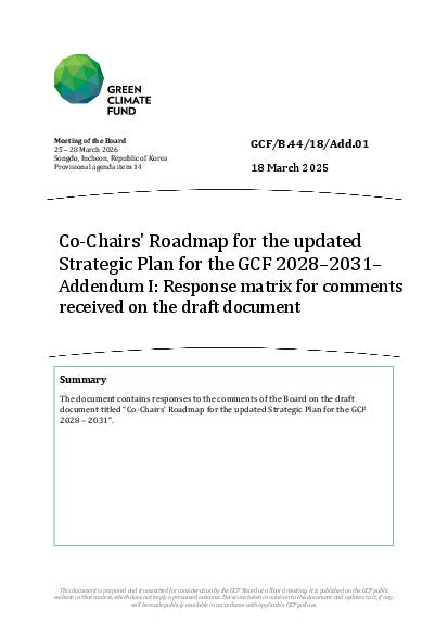 GCF/B.44/18/Add.01: Co-Chairs' Roadmap for the updated Strategic Plan for the GCF 2028–2031– Addendum I: Response matrix for comments received on the draft document