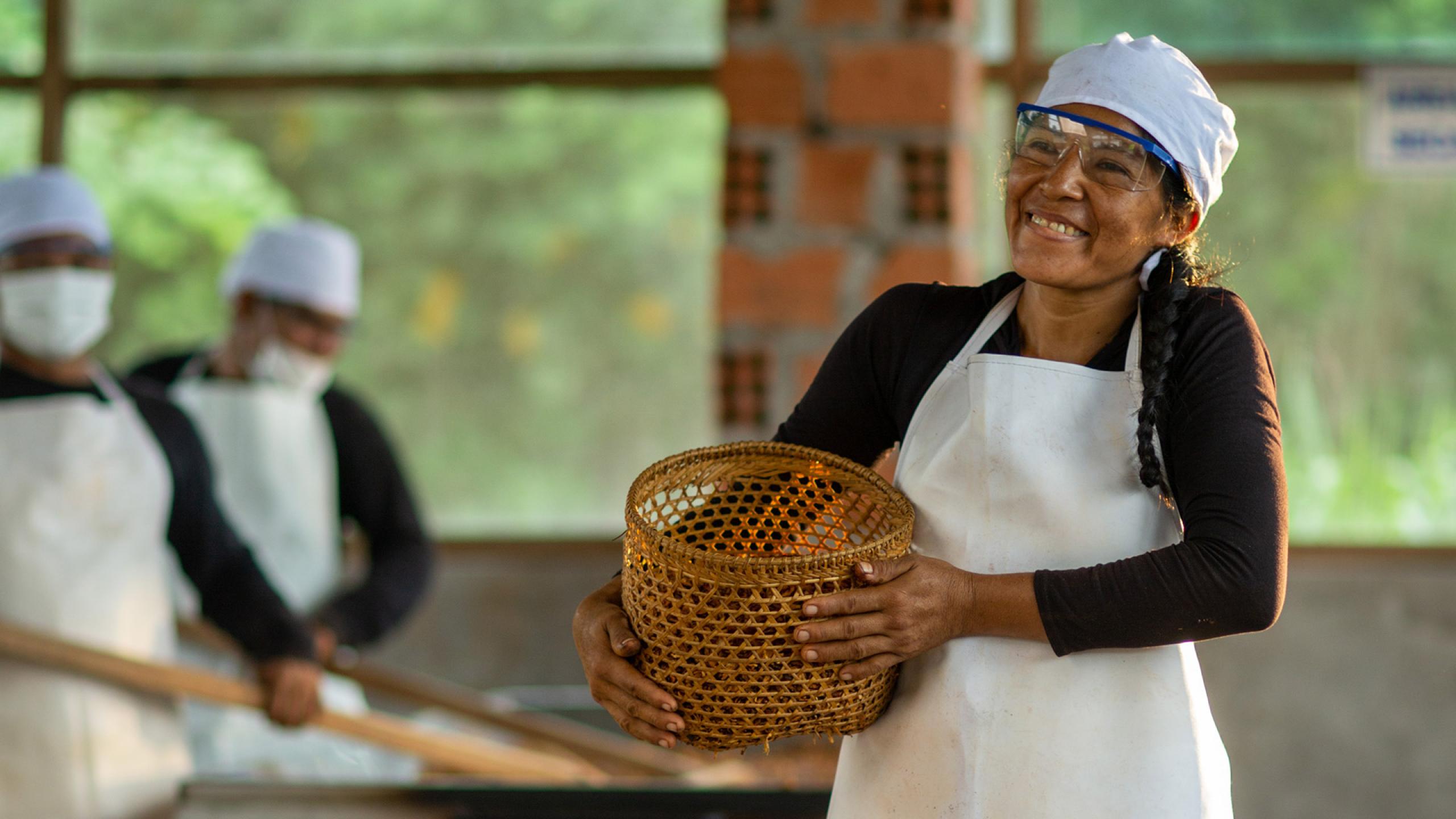 Magdalena Chumbi in the native community of Chapis Apuapisem, where a processing plant has received international organic certification for the production of aguaje oils. Photo: Profonanpe