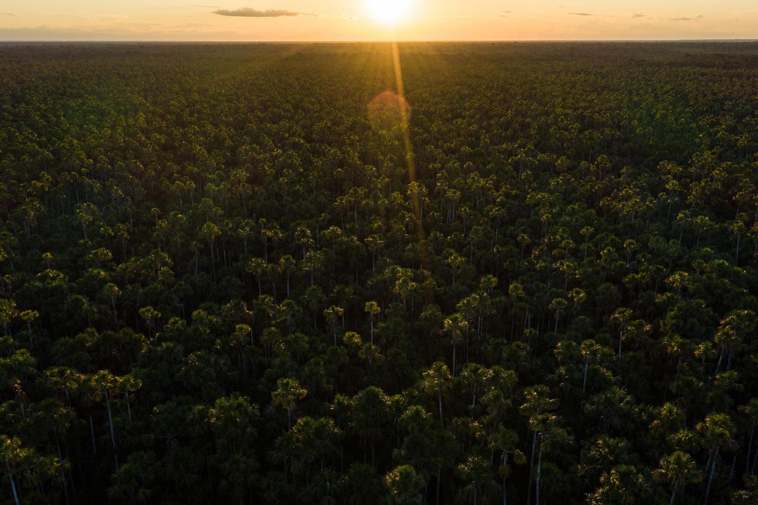 The aguaje palm trees, home to a unique and complex fauna. Most of its mammals and birds feed directly on the aguaje fruit and the water released by the tree root transports nutrients to water bodies and fish. Photo: Profonanpe